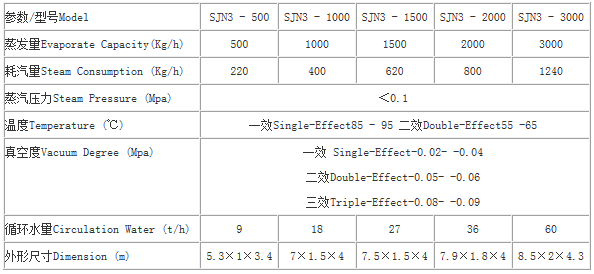 設(shè)備采用外加熱自然循環(huán)和真空濃縮相結(jié)合的方式,蒸發(fā)速度快,濃縮比重達(dá)到1.2以上。